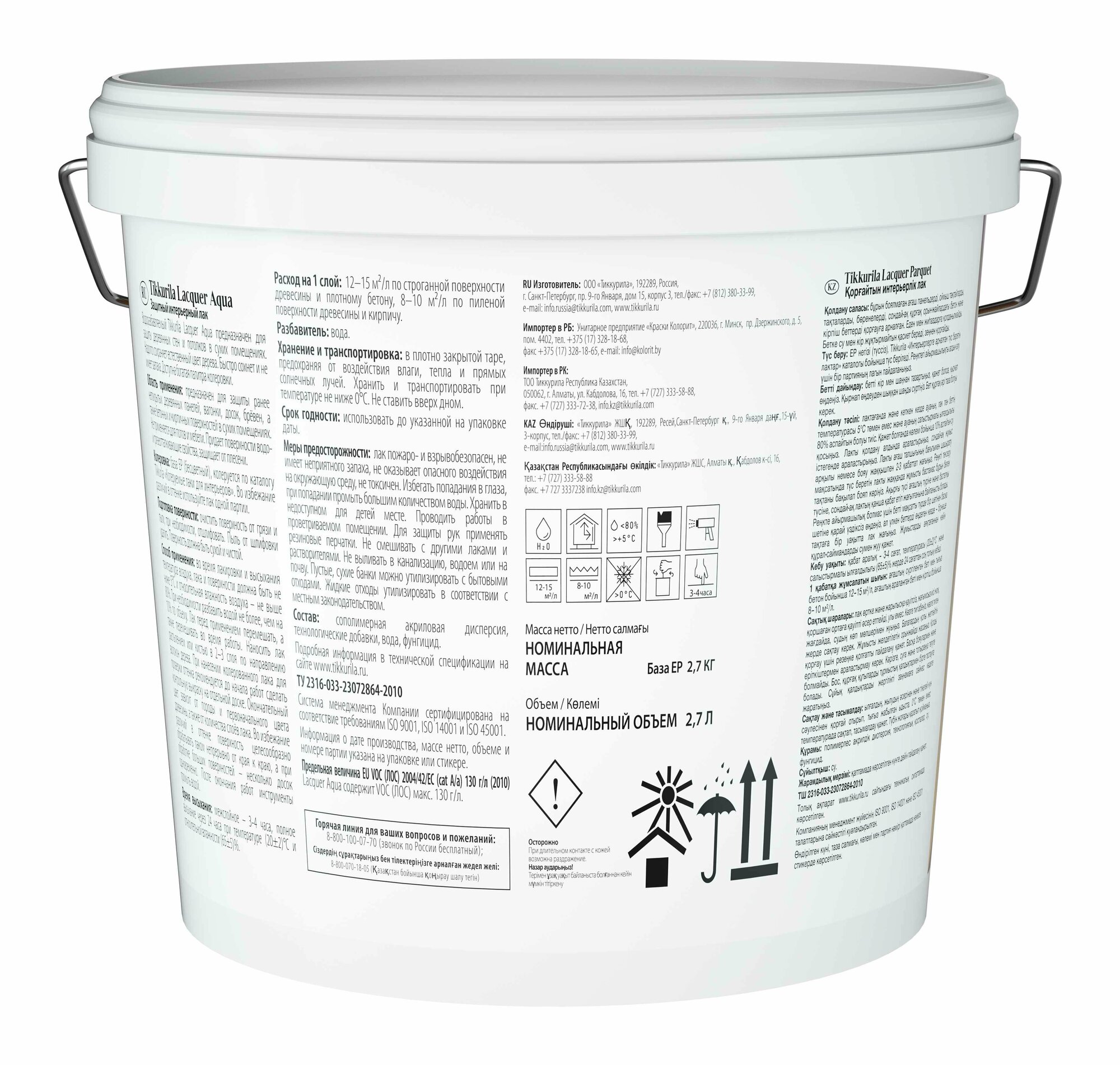 TIKKURILA Euro Laquer Aqua / Евро Лак Аква антисептирующий водный лак полуглянцевый 2,7л,