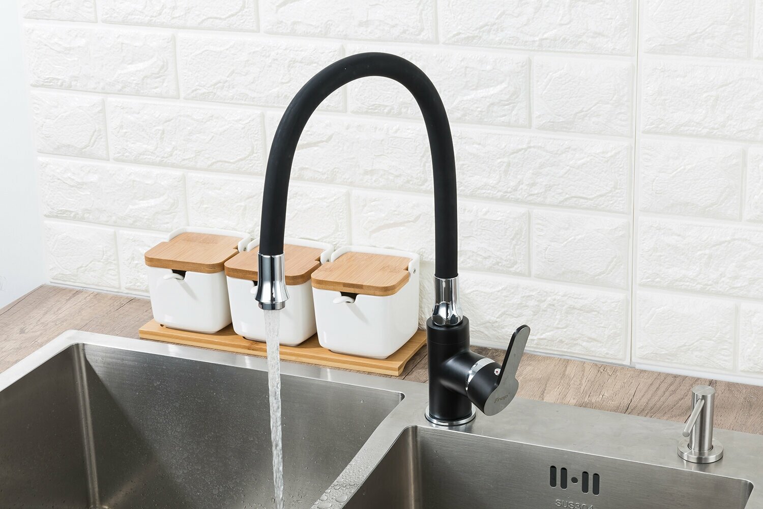 Смеситель для кухни Frap F4042, гибкий излив, однорычажный, черный/хром