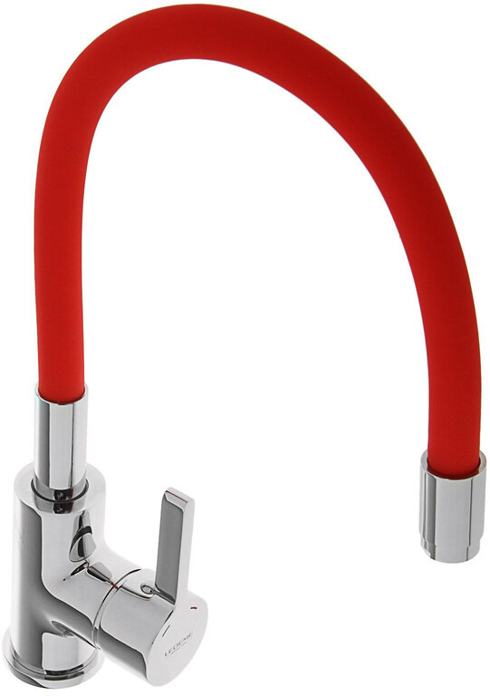Купить 4898-1 Смеситель Кухня LEDEME d-35 с силиконовым изливом (красный+хром) макси