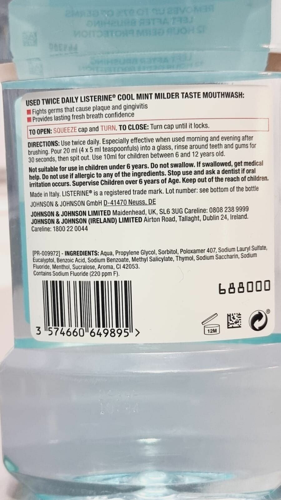 Listerine ополаскиватель Cool Mint Milder Taste 500 мл (Свежая мята, Мягкий вкус)