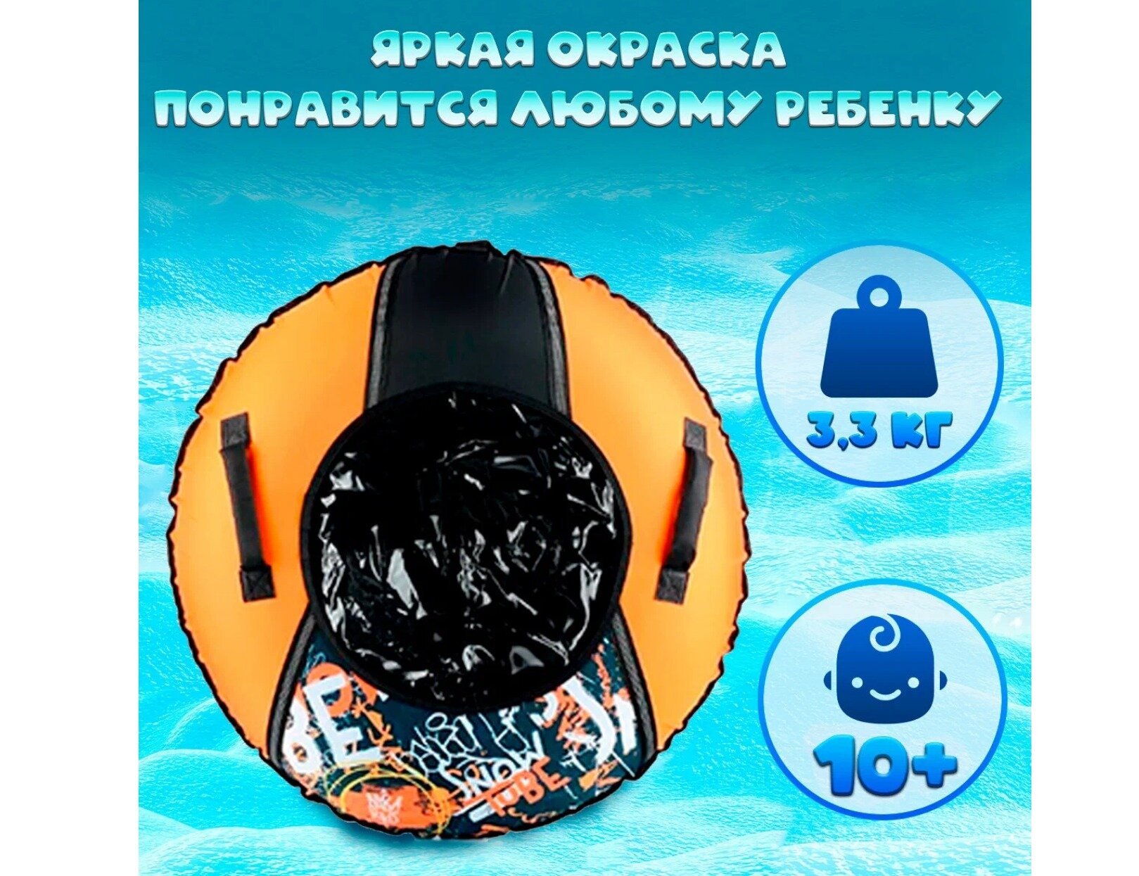 Ватрушка тюбинг 95 см НИКА ТБ1КР (Чехол 1050 мм.) Граффити черный/оранжевый с камерой / Надувные санки для детей и взрослых