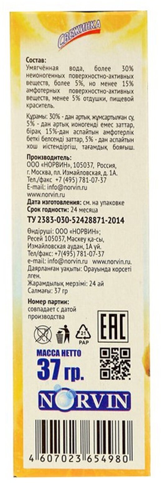 Свежинка Гелевый освежитель для унитаза с дозатором свежинка "Лимон", 37 г