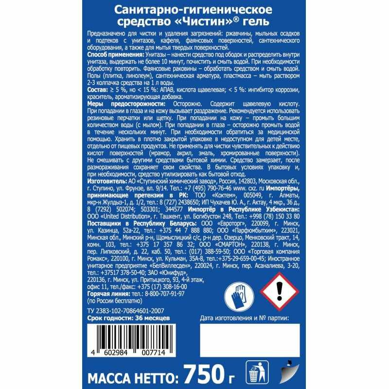 Санитарно-гигиеническое средство "Чистин", гель, 750 мл