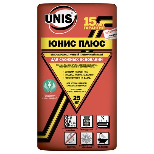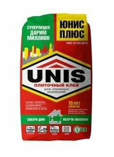 Плиточный клей Unis Юнис-Плюс повышенной прочности 25 кг 24668 .