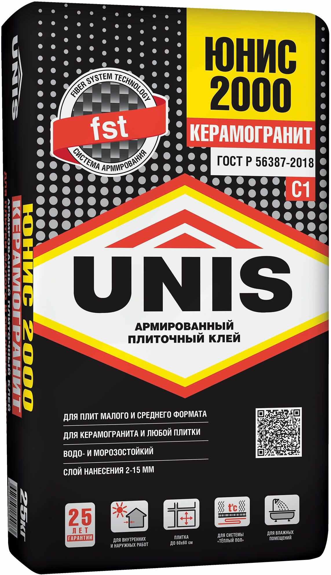 Клей для плитки Unis 2000 керамогранит 25 кг 48 черный мешок юнис (1шт) (65669)
