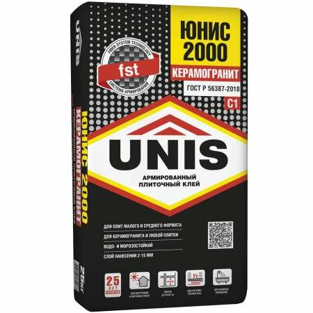 Юнис 2000 клей плиточный (25кг) / UNIS 2000 клей для плитки и камня (класс С1) (25кг)
