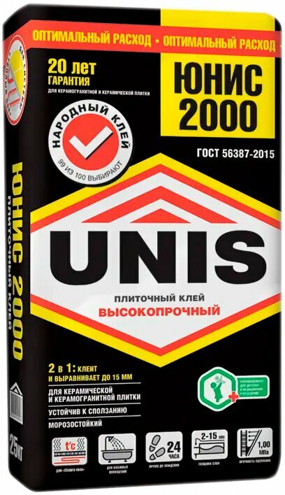 Unis Клей для плитки UNIS 2000. 25 кг
