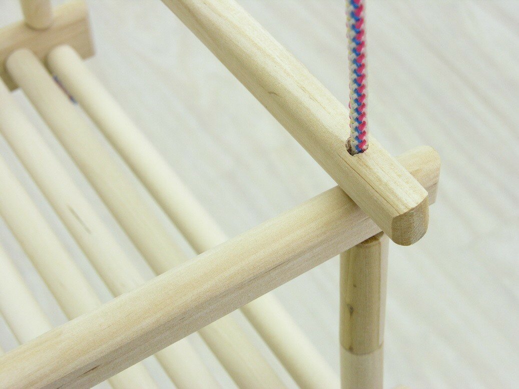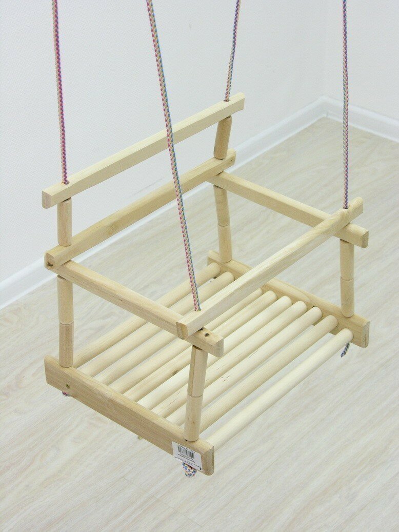 | Минусы: | Детали не отшлифованы, ребенок получит кучу заноз! прежде, чем их вешать необходимо довести до ума. И, на мой взгляд, слишком высокие, малыш самостоятельно на них не сядет. Веревку пришлось заменить. |
