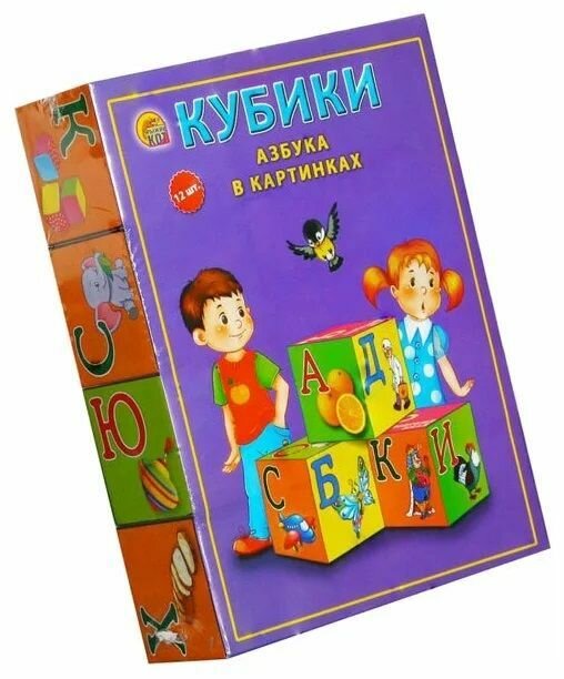 Кубики пластиковые. 12 шт. Азбука В картинках (цветная) (Арт. К12-9038)