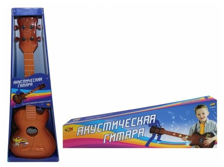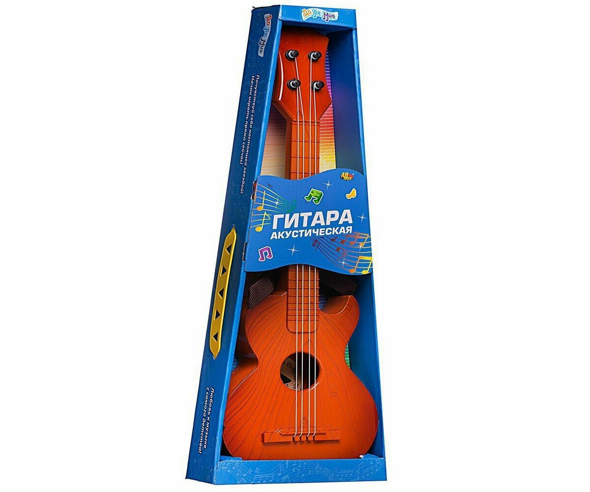 Гитара акустическая коричневая, в открытой коробке, 18,5х5,5х51,5см - ABtoys