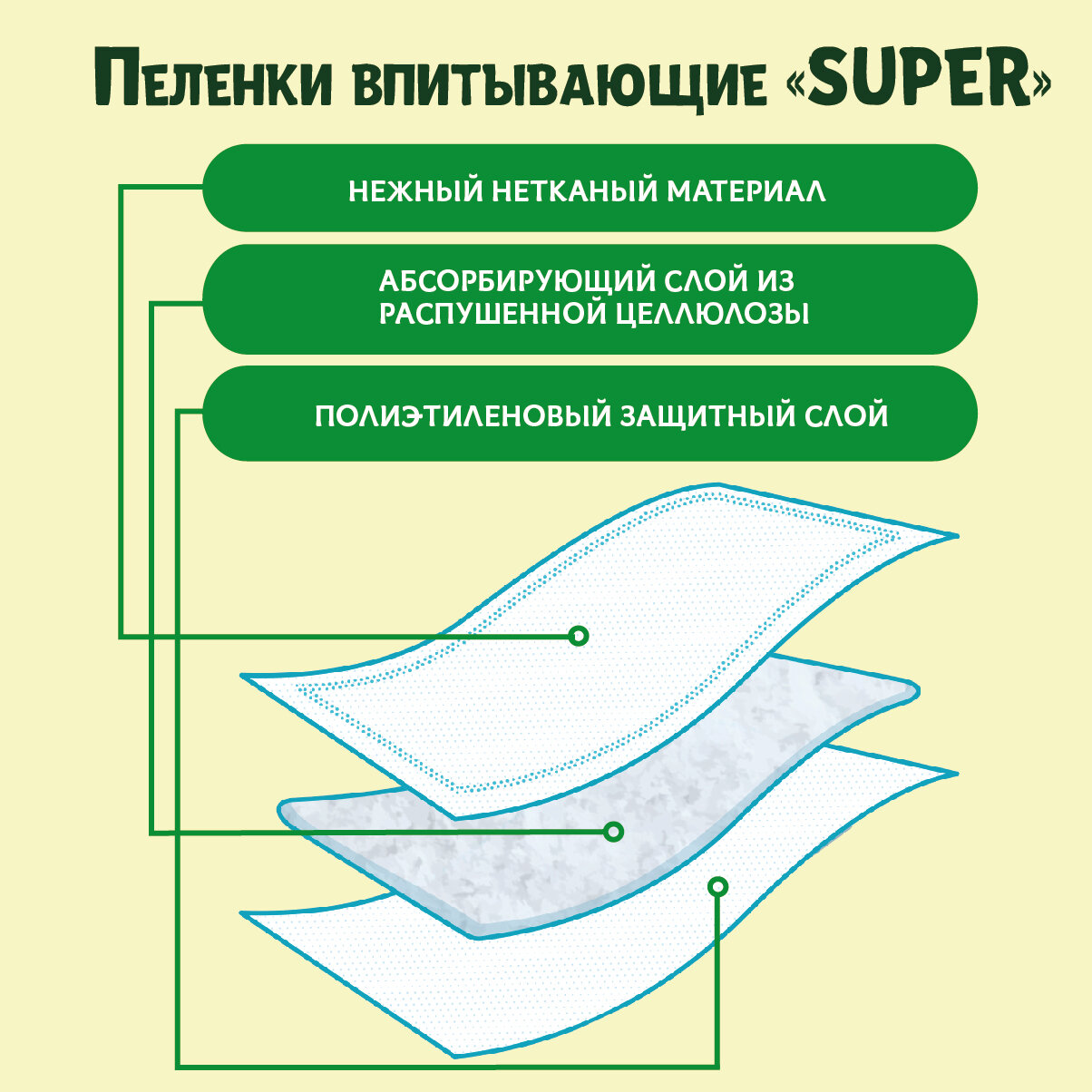 Пеленки одноразовые впитывающие Пелигрин 60х90 см, 20 шт. Super