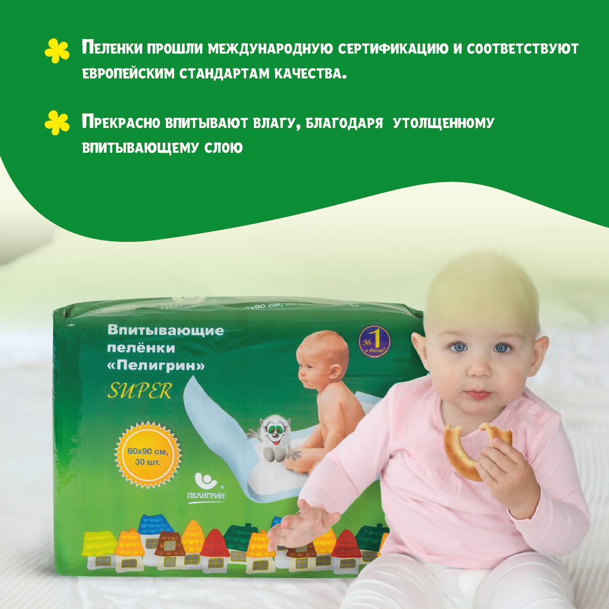 Пеленки одноразовые впитывающие Пелигрин 60х90 см, 30 шт. Super интересное: