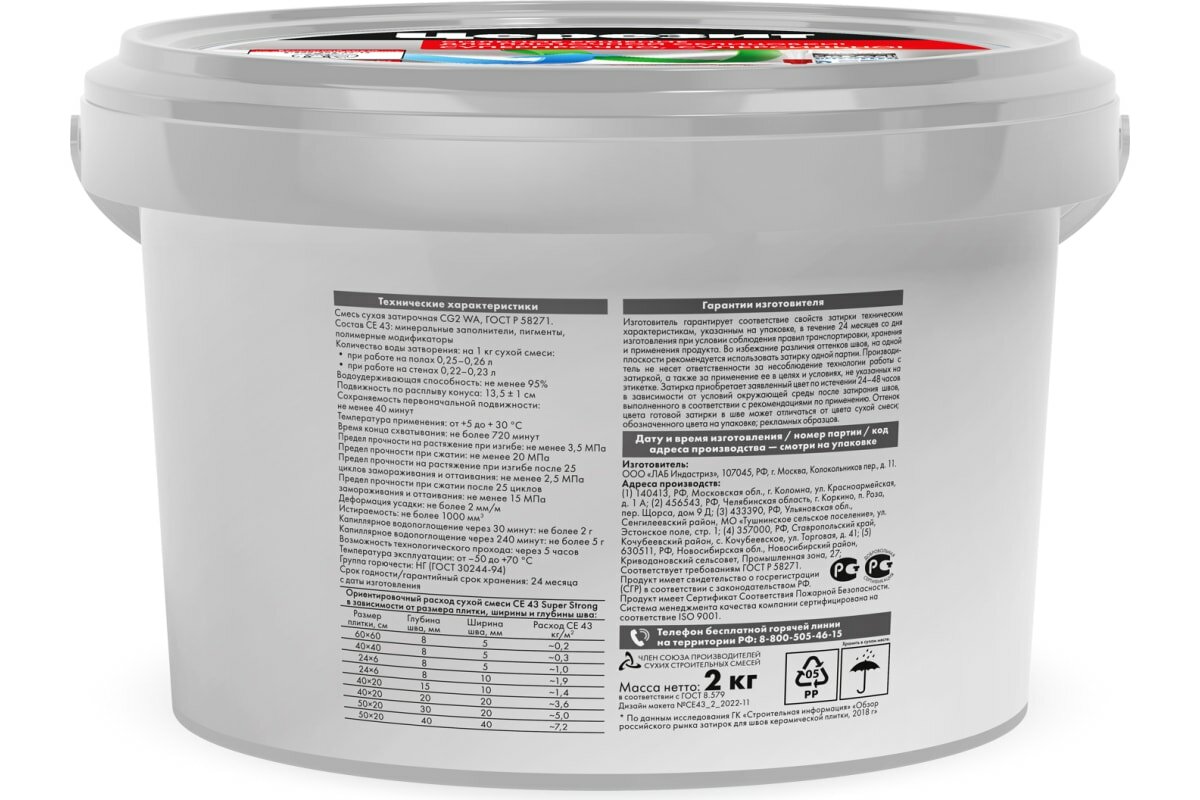 Затирка церезит / CERESIT CE 43 Super Strong, 2 кг, дымчато-белый 02