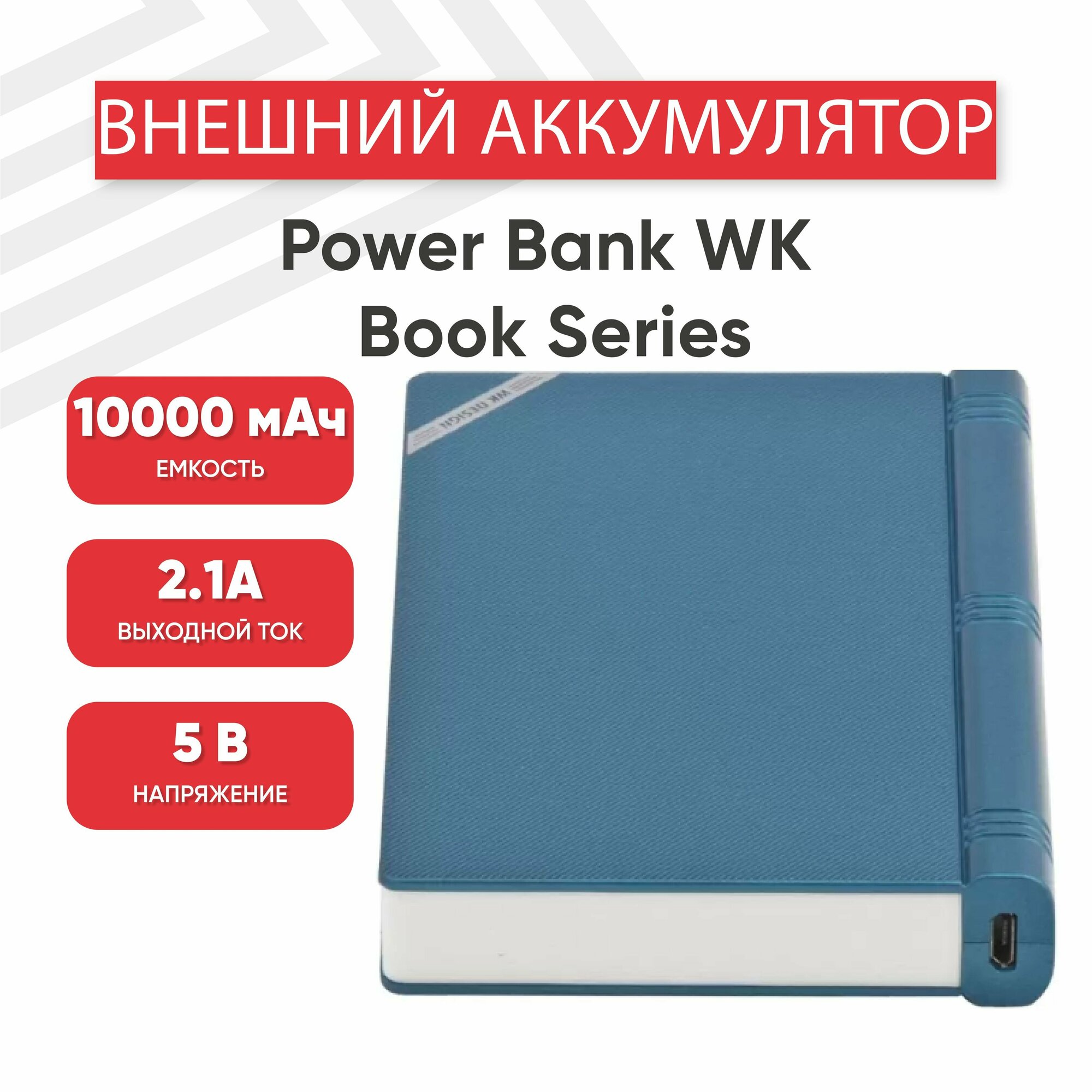 Внешний аккумулятор (Повербанк (powerbank), аккумуляторная батарея) WK Book WP-031, 10000мАч, 1xUSB, 2.1А, Li-Ion, синий интересное: