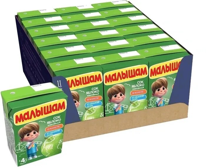 Сок осветленный Малышам Из яблок, c 4 месяцев, 0.2л * 18 пачек интересное: