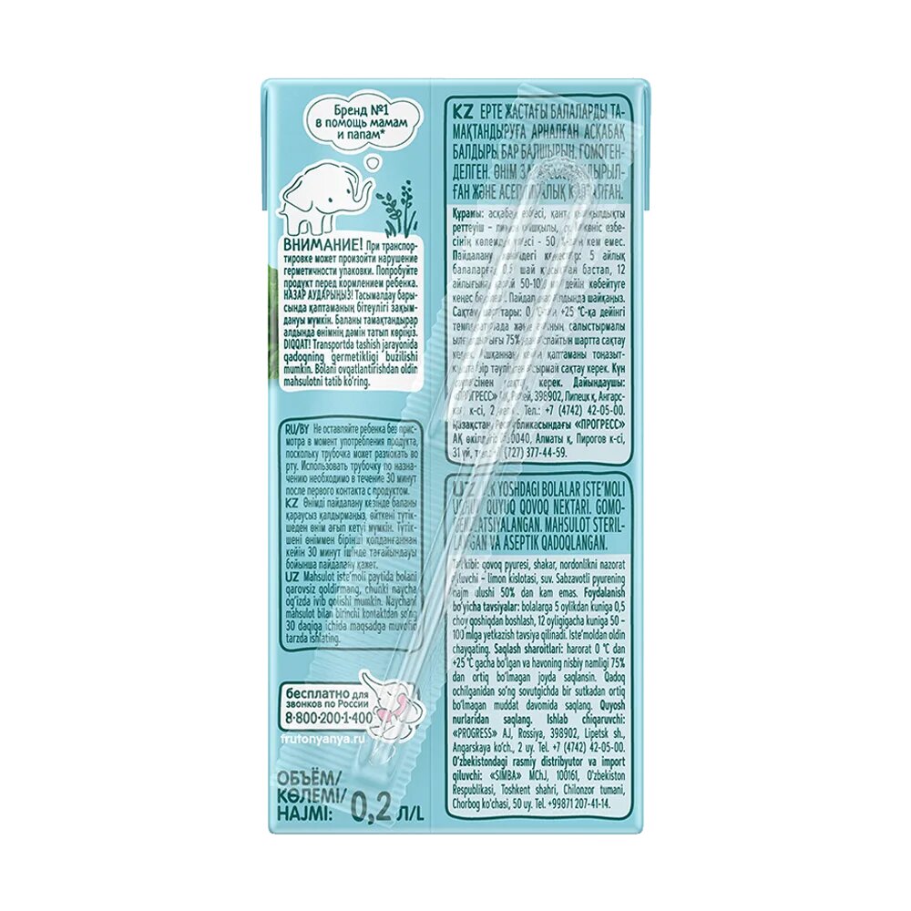 Нектар ФрутоНяня из тыквы с мякотью с 5 месяцев 0,2 л 18 шт интересное: