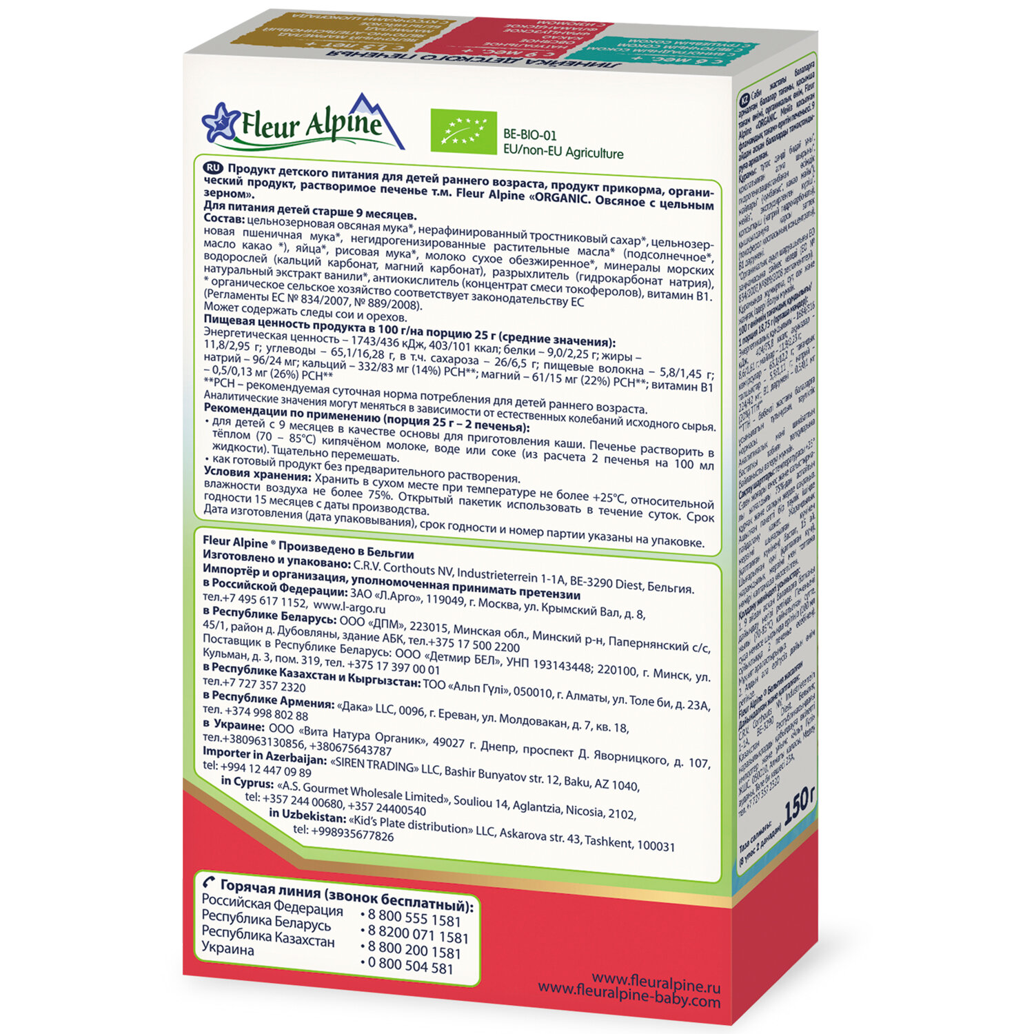 Купить Печенье детское Fleur Alpine Organic (Флёр Альпин Органик) овсяное без пальмового масла с 9 мес 150 г