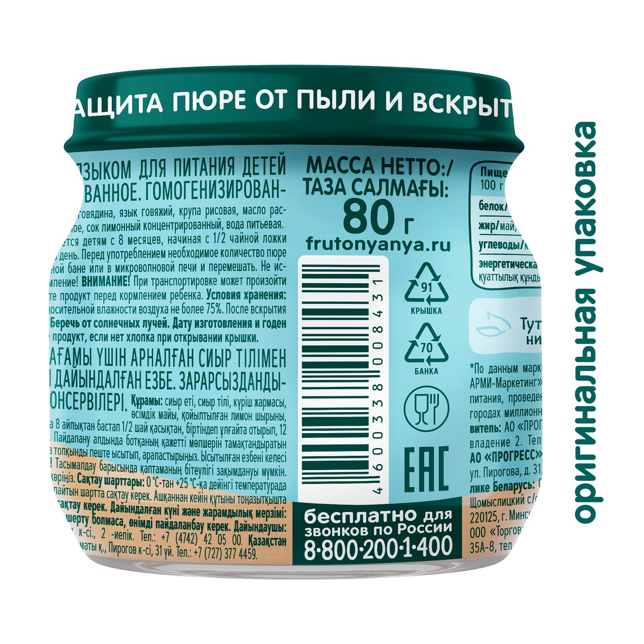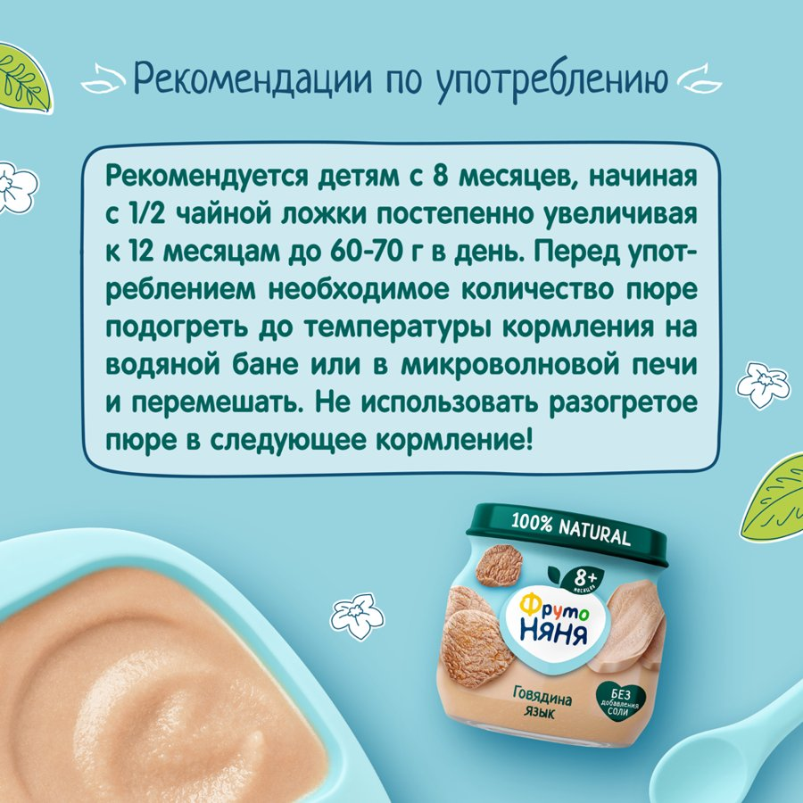ФрутоНяня Пюре из Говядины с Языком {с 6 мес} ст/б 80г. интересное: