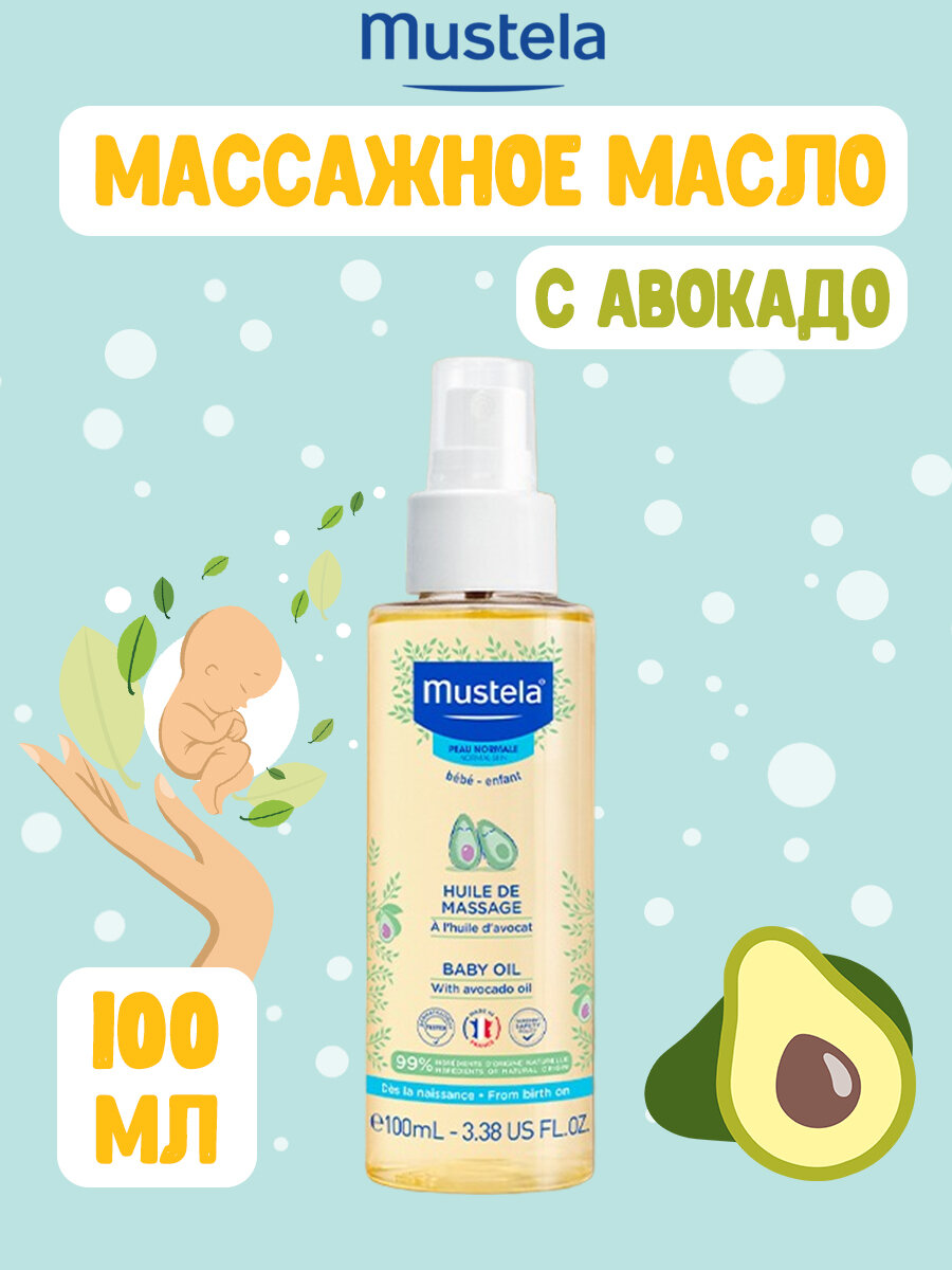 Mustela Масло массажное для новорожденных младенцев и детей, 100 мл, Mustela