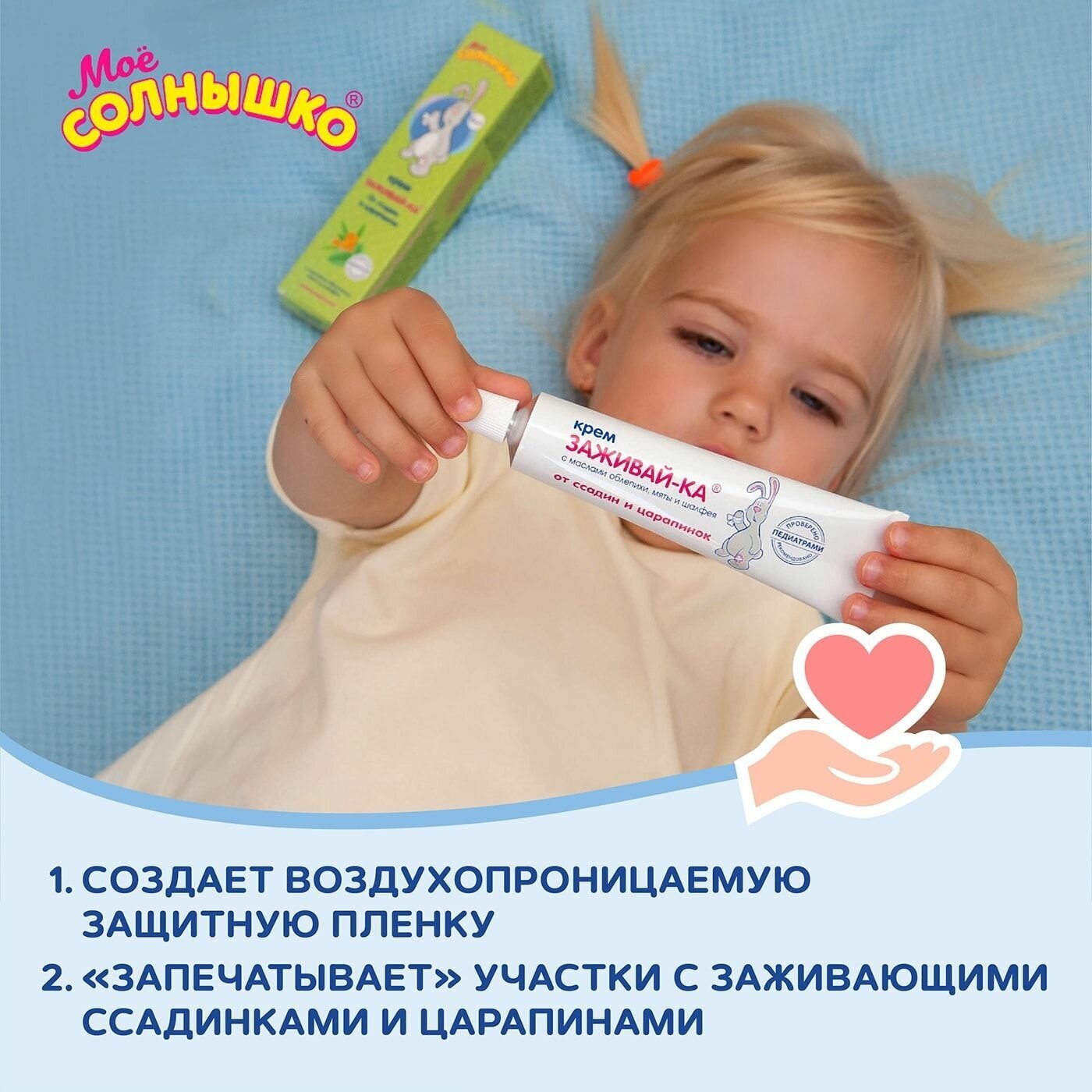 Крем детский Мое солнышко "Заживай-ка", от царапин и ссадин, 46 мл, туба