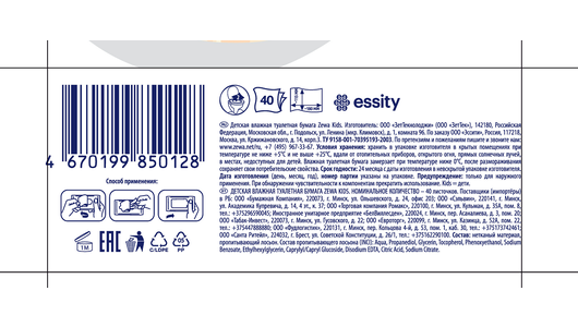 Влажная туалетная бумага Zewa Детская, 40 шт. интересное:
