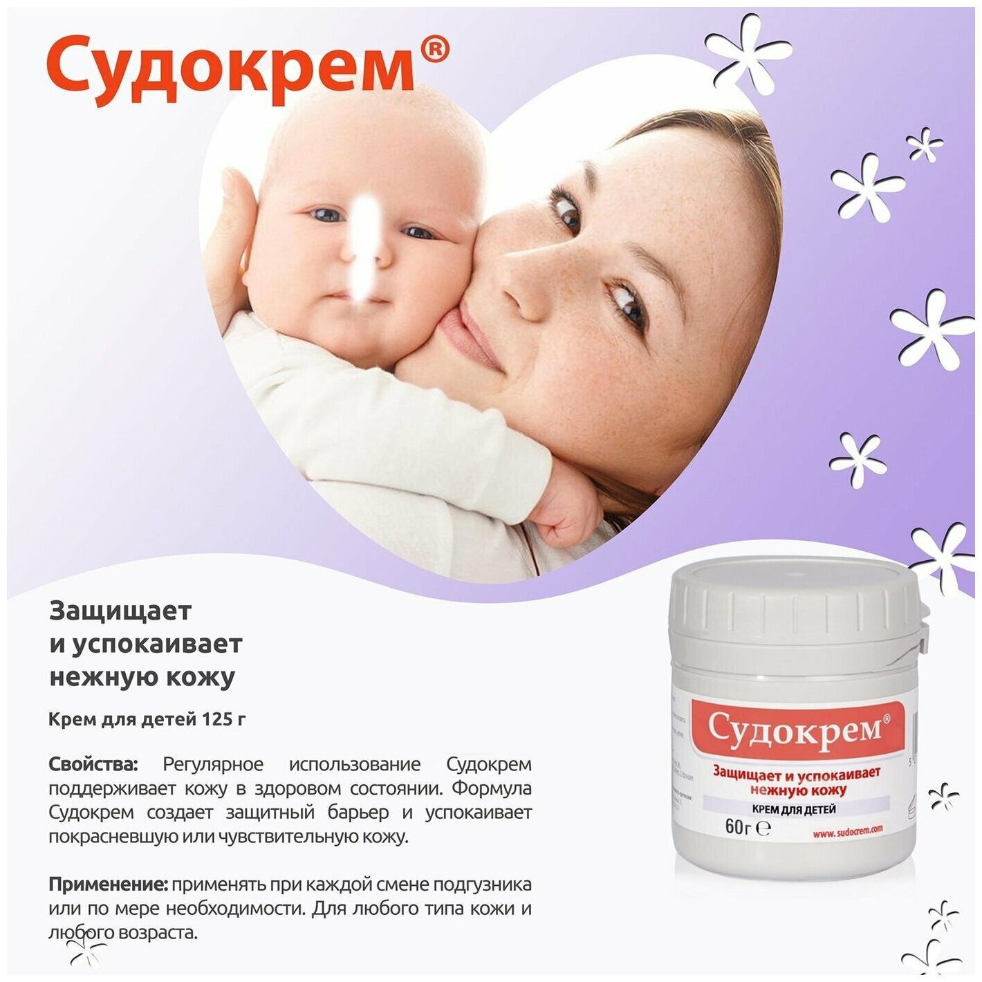 Судокрем защитный и успокаивающий под подгузник от опрелостей и покраснений для новорожденных 60 г