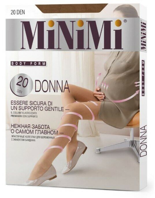 Колготки женские Minimi DONNA BODY FORM 20 ден для беременных, прозрачные, тонкие, с классической посадкой, размер 4, карамель