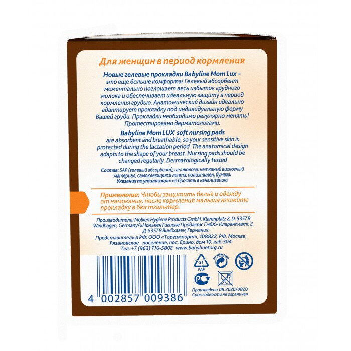 BABYLINE Гелевые прокладки для кормящих мам, Германия, 30 шт. интересное: