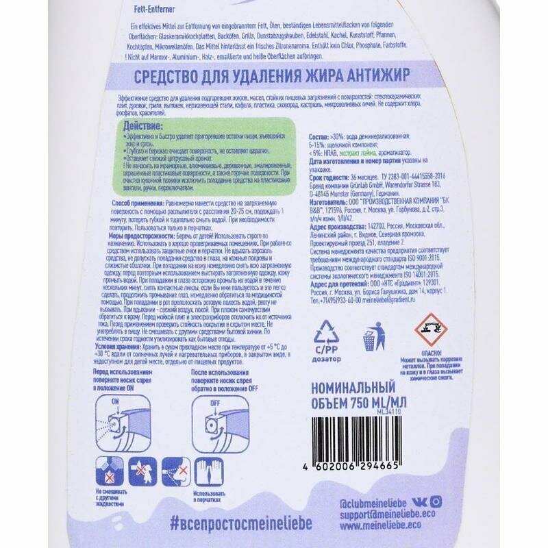 Средство Meine Liebe для удаления жира антижир, 500мл