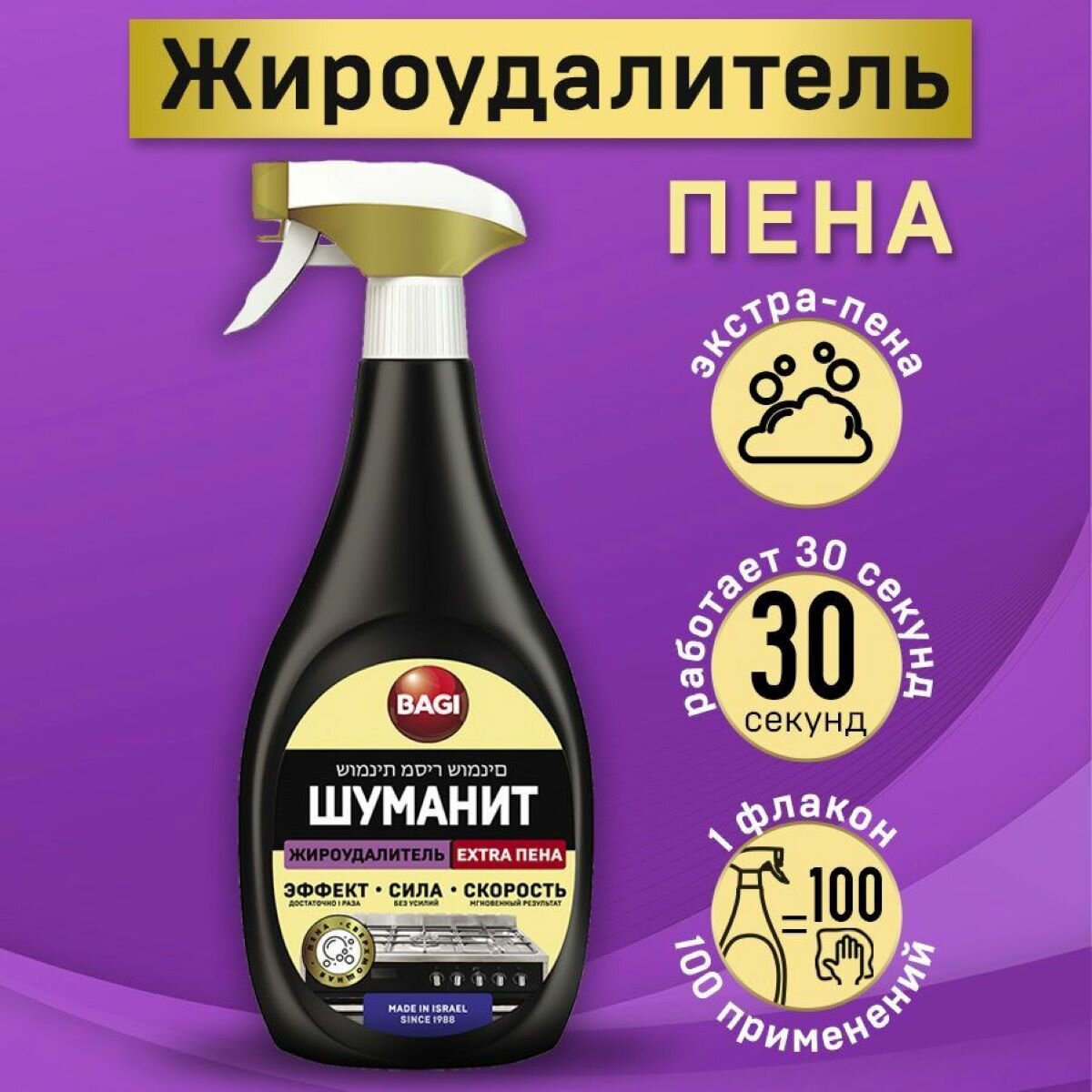 Жироудалитель BAGI шуманит EXTRA для чистки плит, спрей-пена, 400 мл