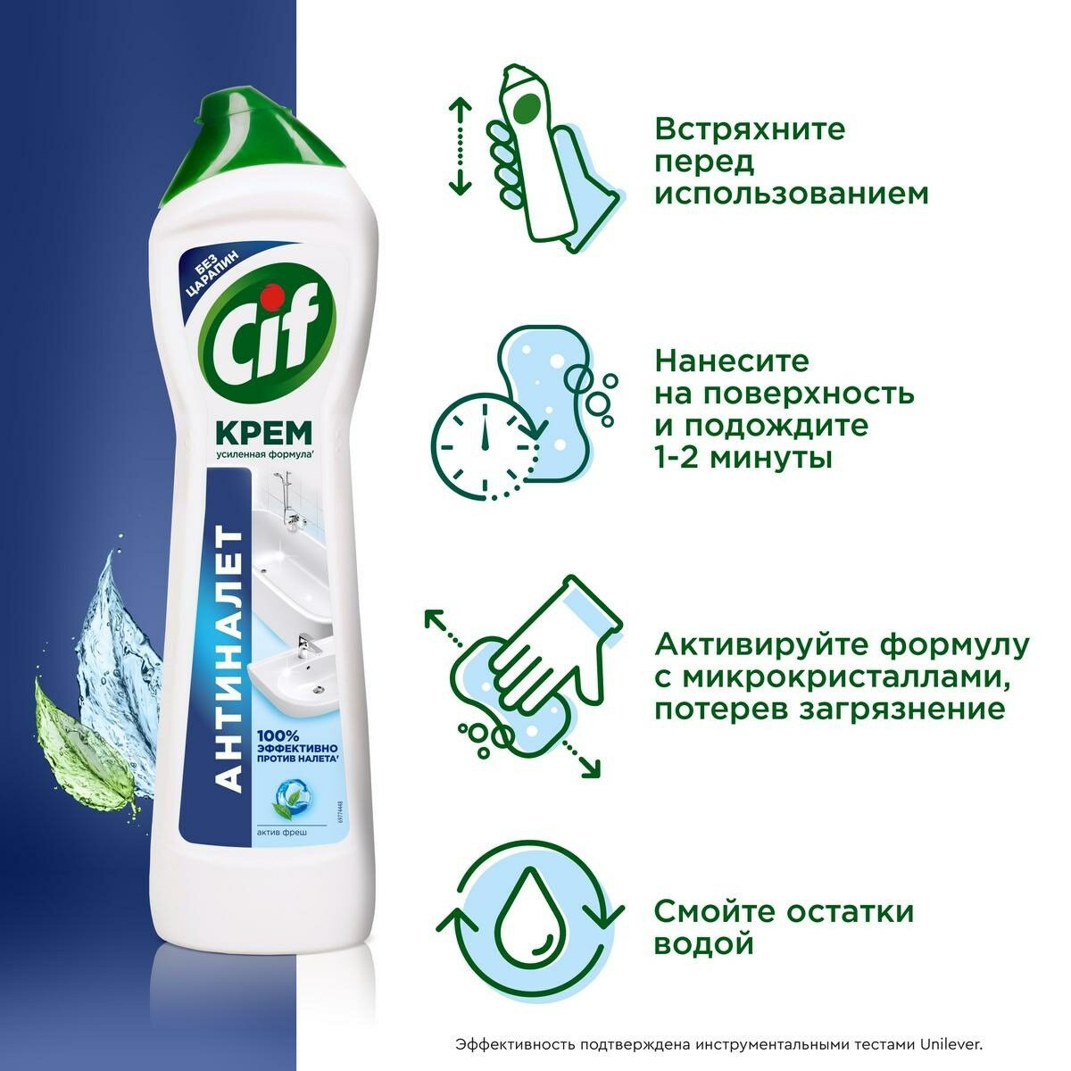 Cif Актив Фреш, универсальный чистящий крем для ванной, подходит для акрила, 500 мл