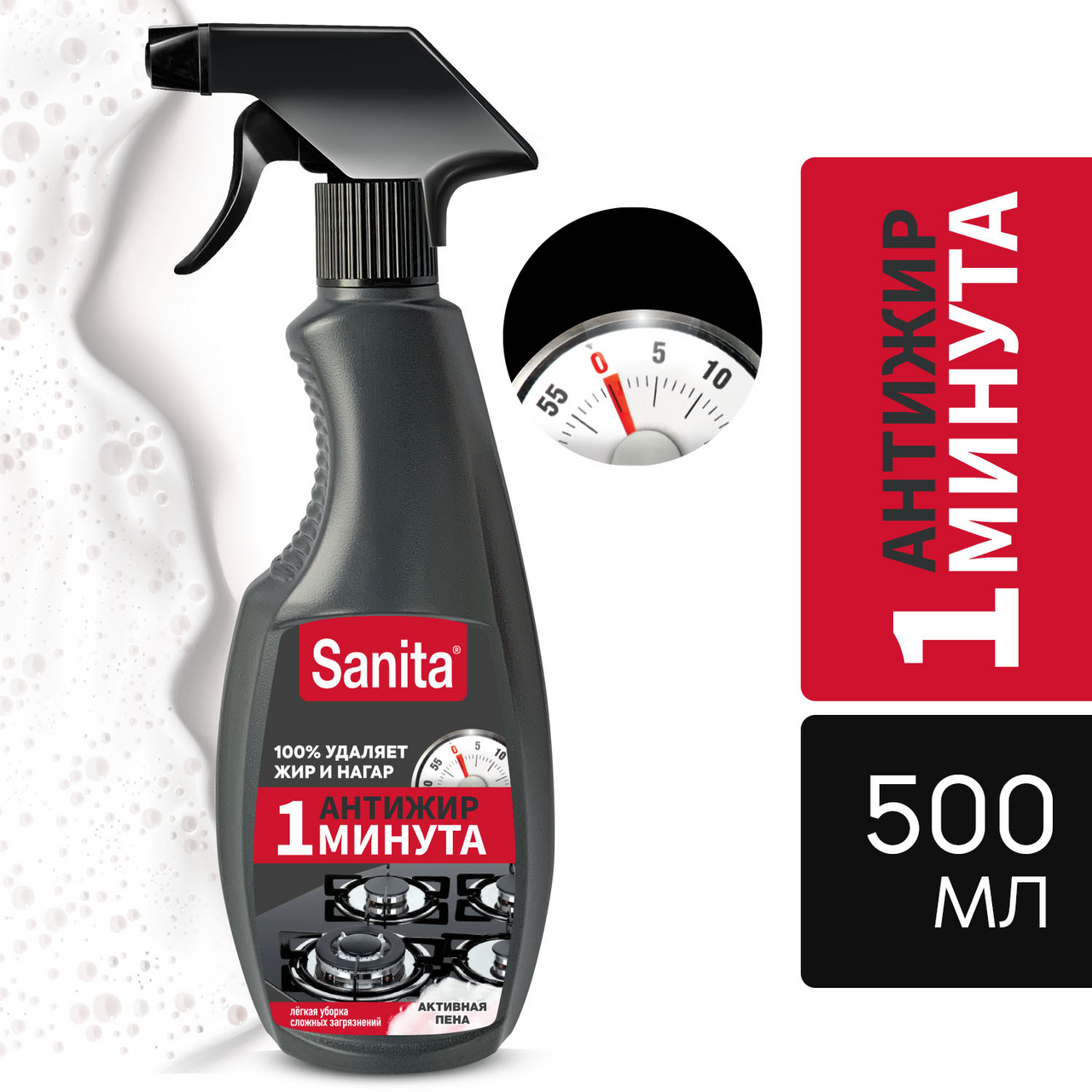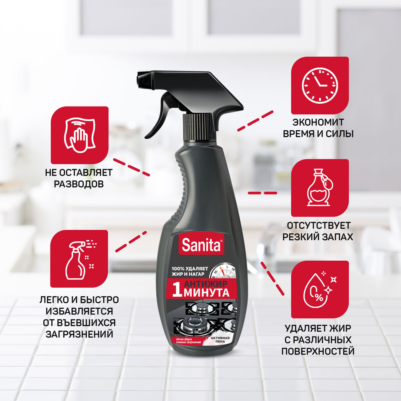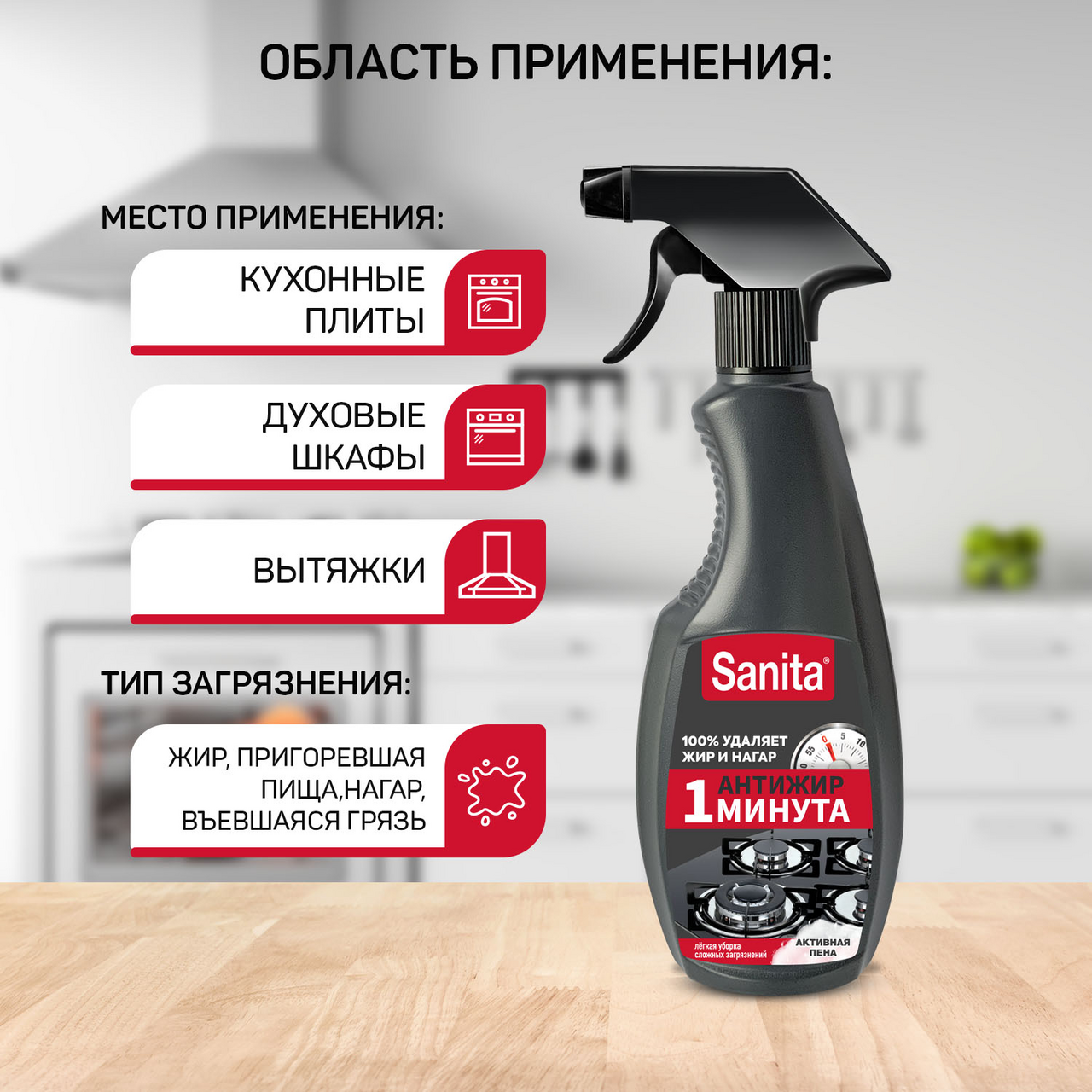 Набор чистящих средств для кухни Sanita спрей очиститель Антижир "1 минута", 500 мл (4 шт)