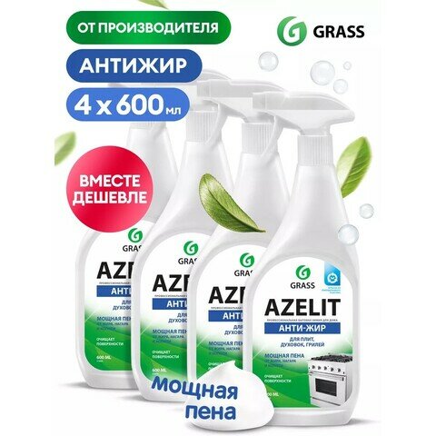 Grass Средство для удаления жира, нагара и копоти Azelit, Анти-жир, Универсальное, 600 мл, 3 шт