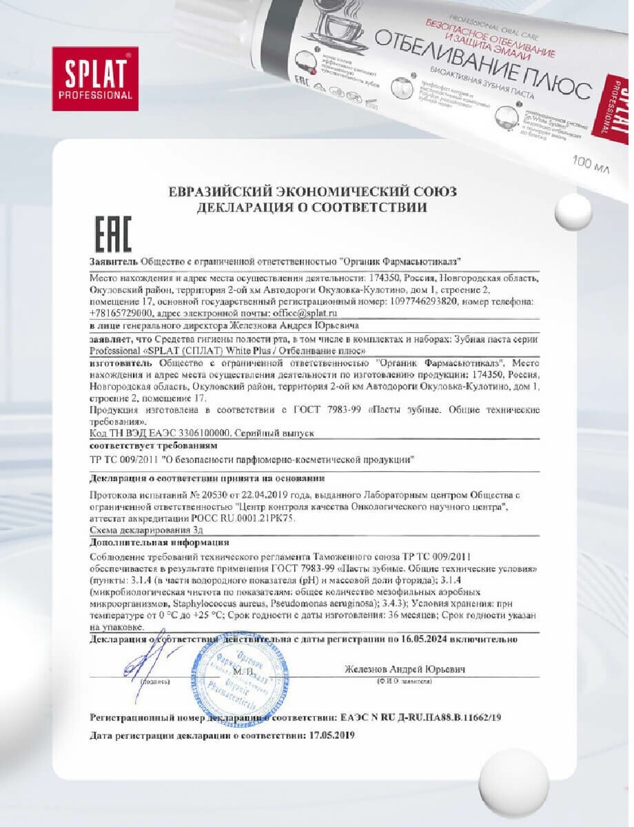 Зубная паста SPLAT Professional, Отбеливание плюс, 80 г, в тубе в коробке (4603014008480)