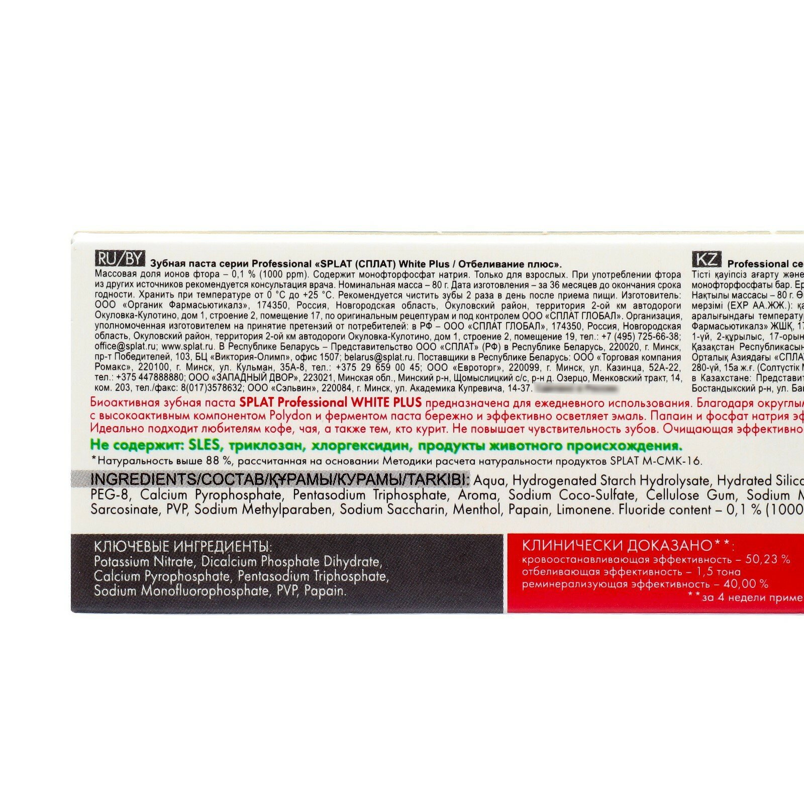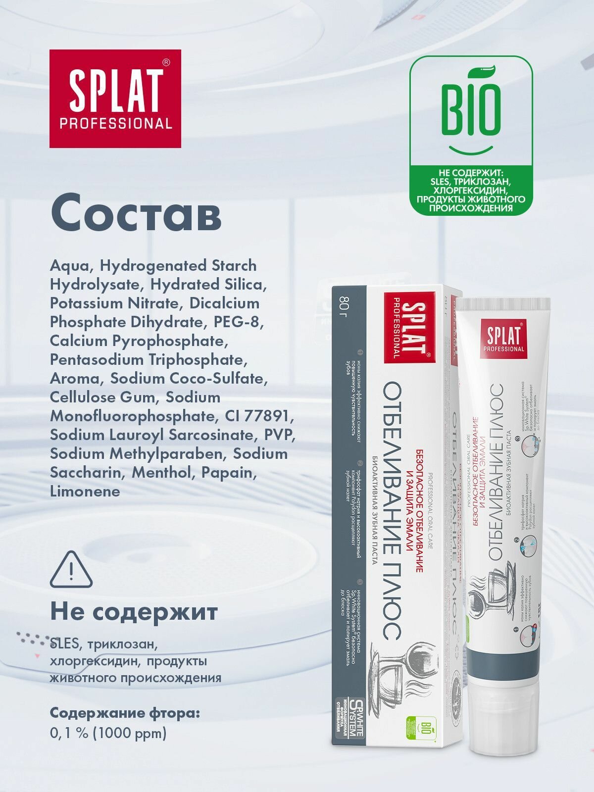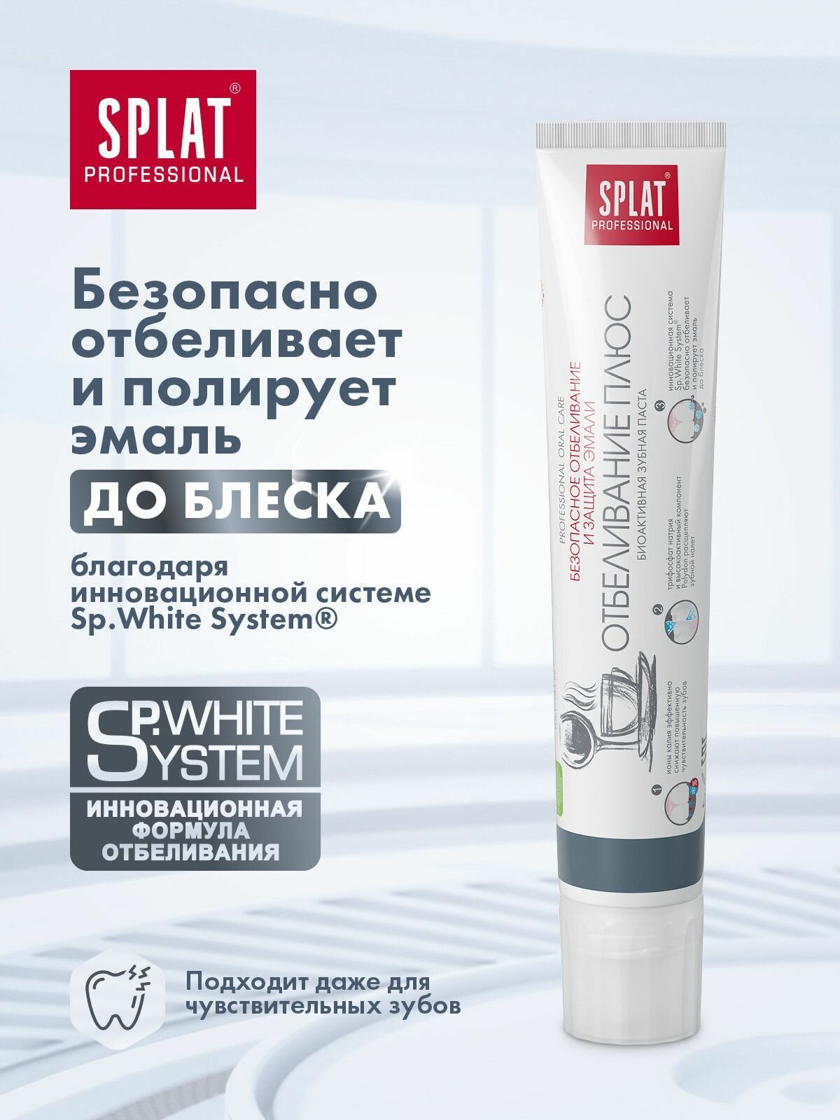 Зубная паста SPLAT Professional, Отбеливание плюс, 80 г, в тубе в коробке (4603014008480)