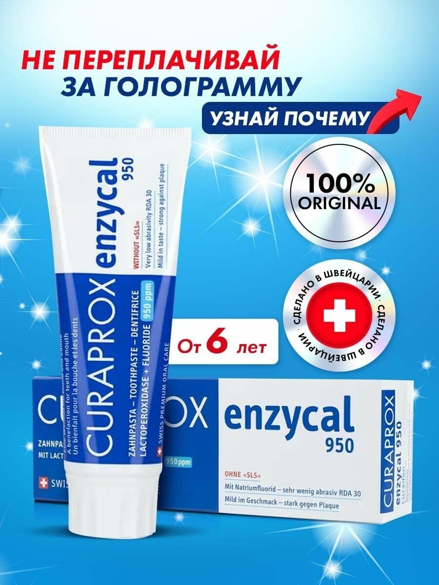 Curaprox Зубная паста для чувствительной эмали зубов Enzycal 950 ppm, 6+, 75ml, Curaprox