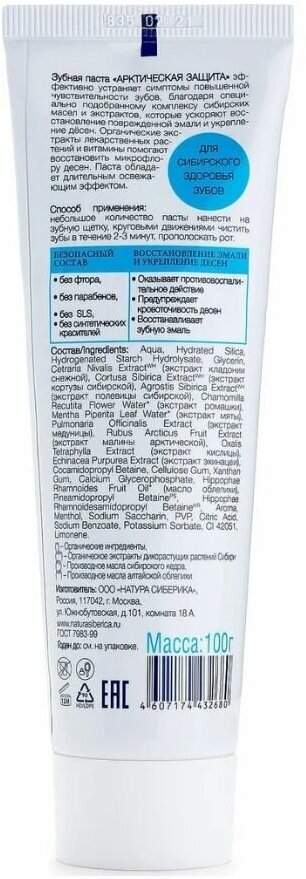 Купить Зубная паста Natura Siberica Арктическая защита, 100 г