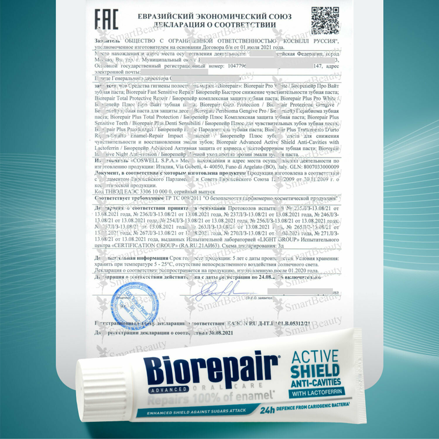 Зубная паста 75 мл BIOREPAIR "Pro active shield", активная защита зубов, италия, GA1766300