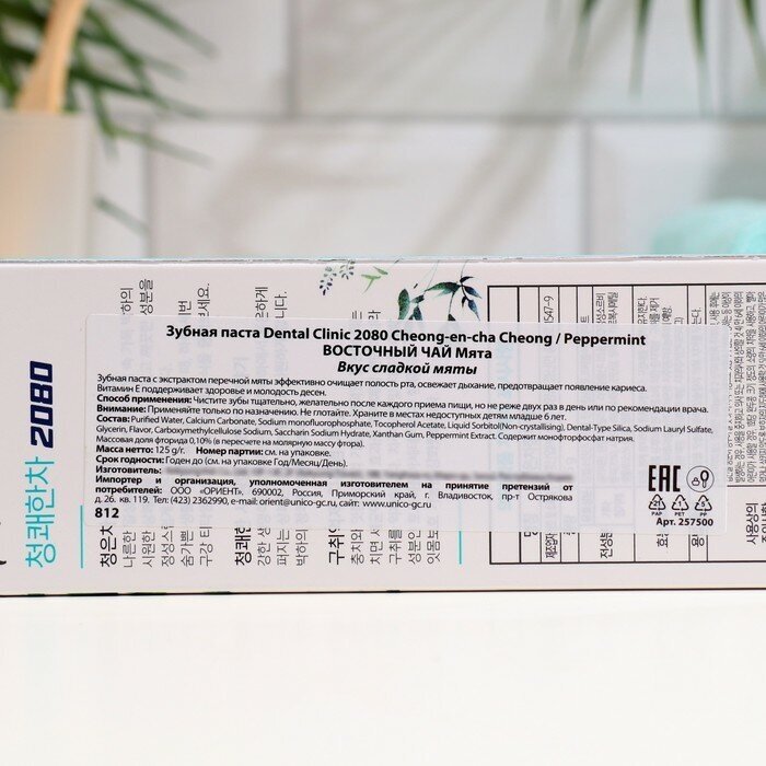 Dental Clinic 2080 Зубная паста Восточный Чай Мята 120 г, вкус сладкой мяты