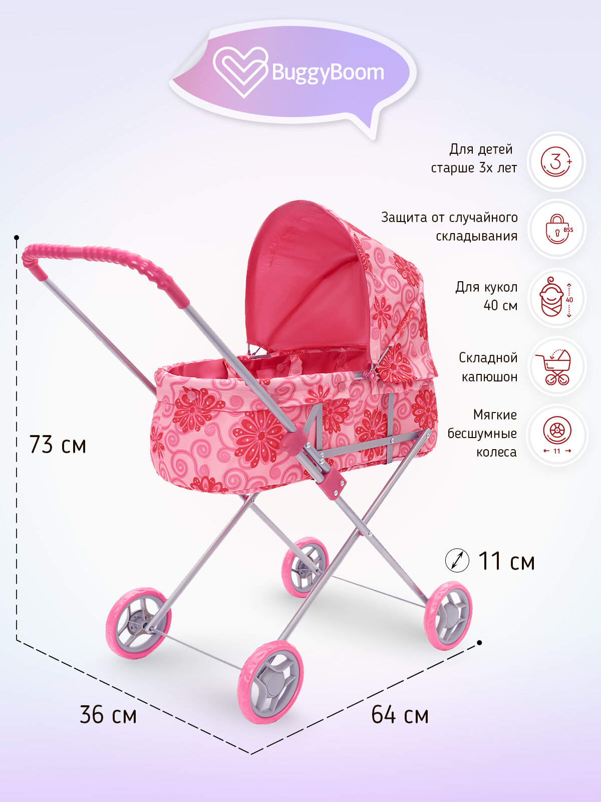 Коляска для куклы Buggy Boom "Mixy", классическая, ярко-розовая, 64х36х73 см (8013-M1411)