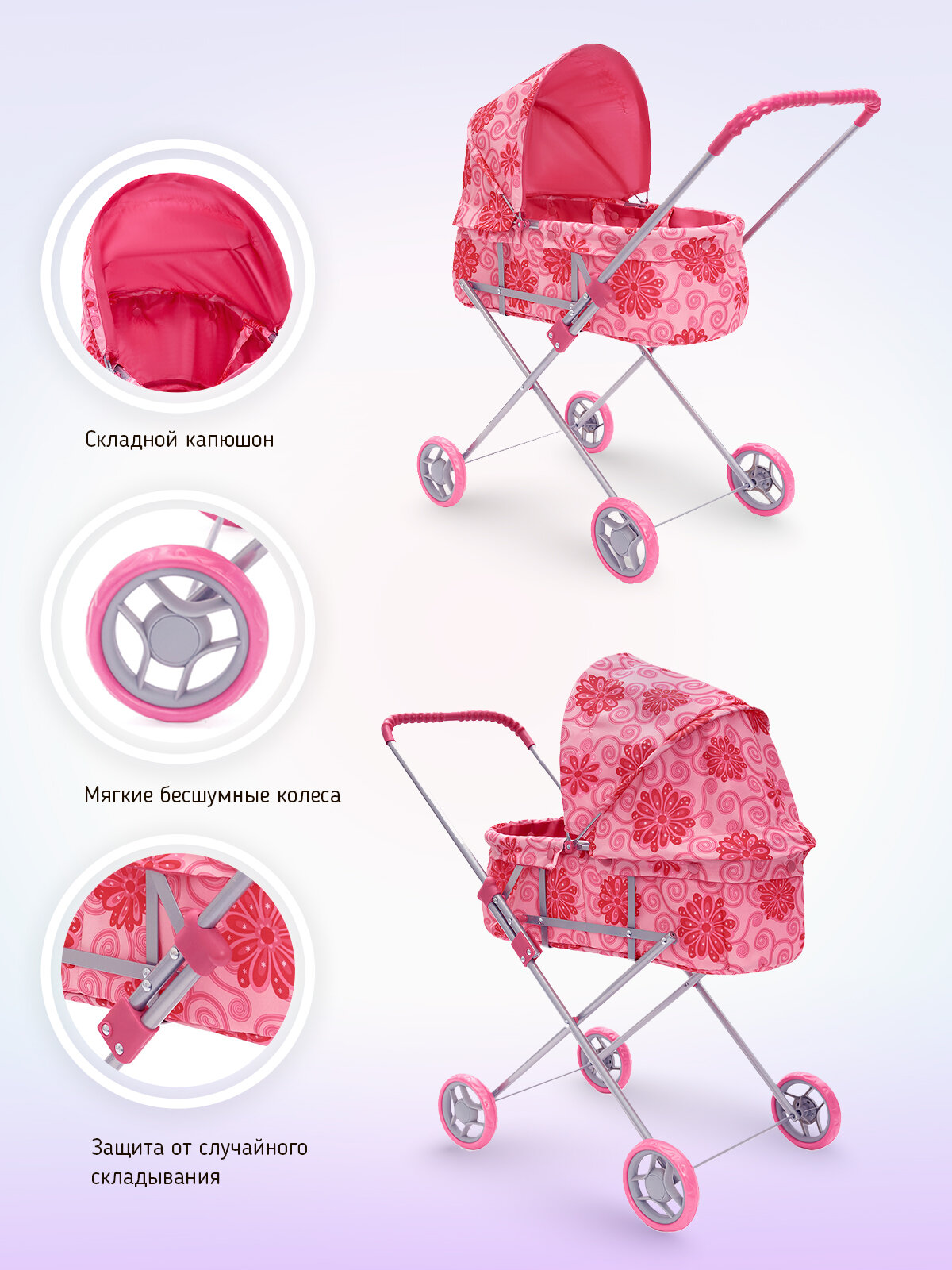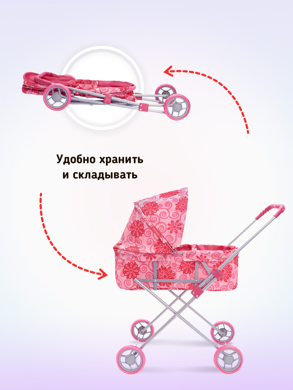 Коляска для куклы BUGGY BOOM 8013-M1414/СТ Микси роз. круги
