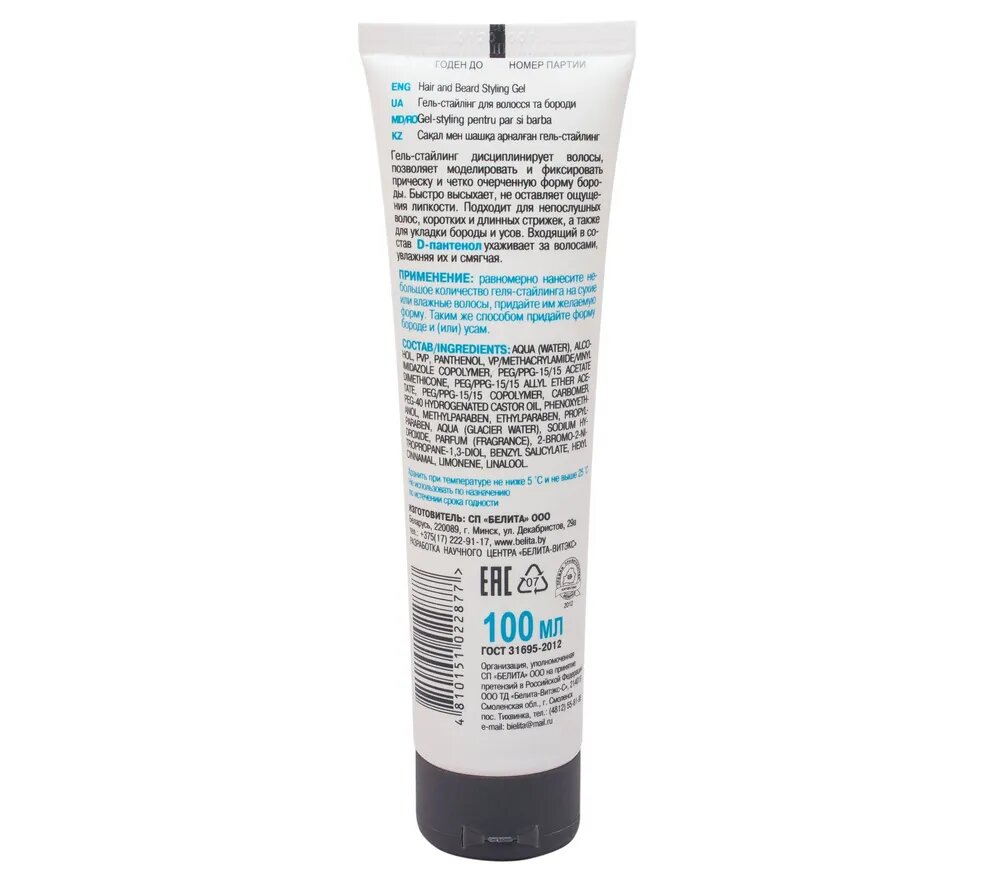 Гель-стайлинг для волос и бороды белита Young Men, 100 мл интересное: