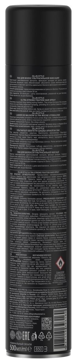 OLLIN Professional Лак для волос, ультрасильная фиксация, 500 г, 500 мл