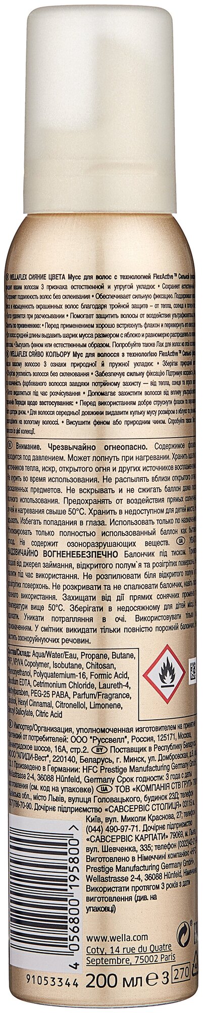 Веллафлекс / Wellaflex - Мусс для укладки волос Сияние цвета сильная фиксация 200 мл(тройка) интересное: