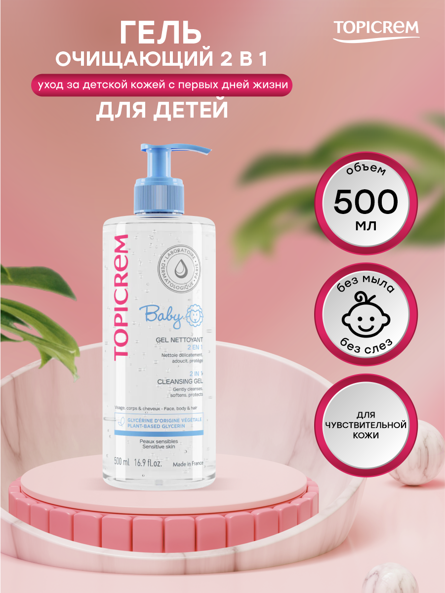 TOPICREM Детская линия - с первых дней жизни Очищающий гель 2в1 для детей, 500 мл