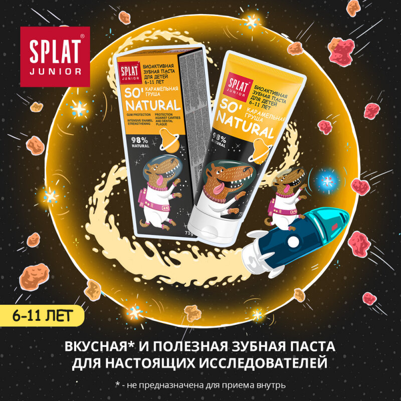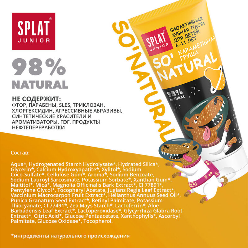 SPLAT Junior Натуральная зубная паста для детей 6-11 лет карамельная груша, 73 г.