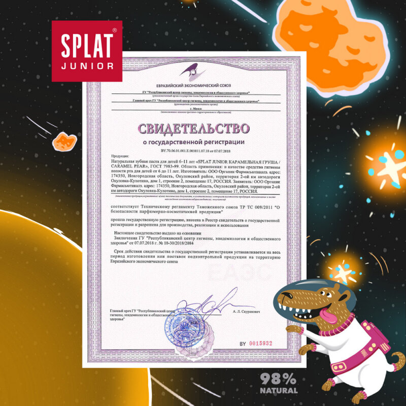 СохранитьЗубная паста SPLAT Junior Карамельная груша 6-11 лет, 55 мл, 73 г интересное: