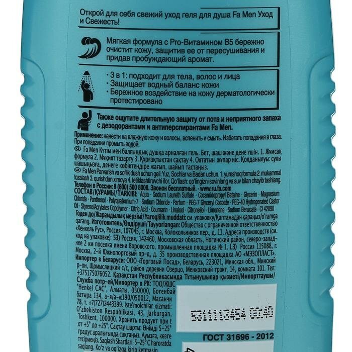 Фа / Fa Men - Гель для душа 3в1 для тела, лица и волос Уход и свежесть 250 мл