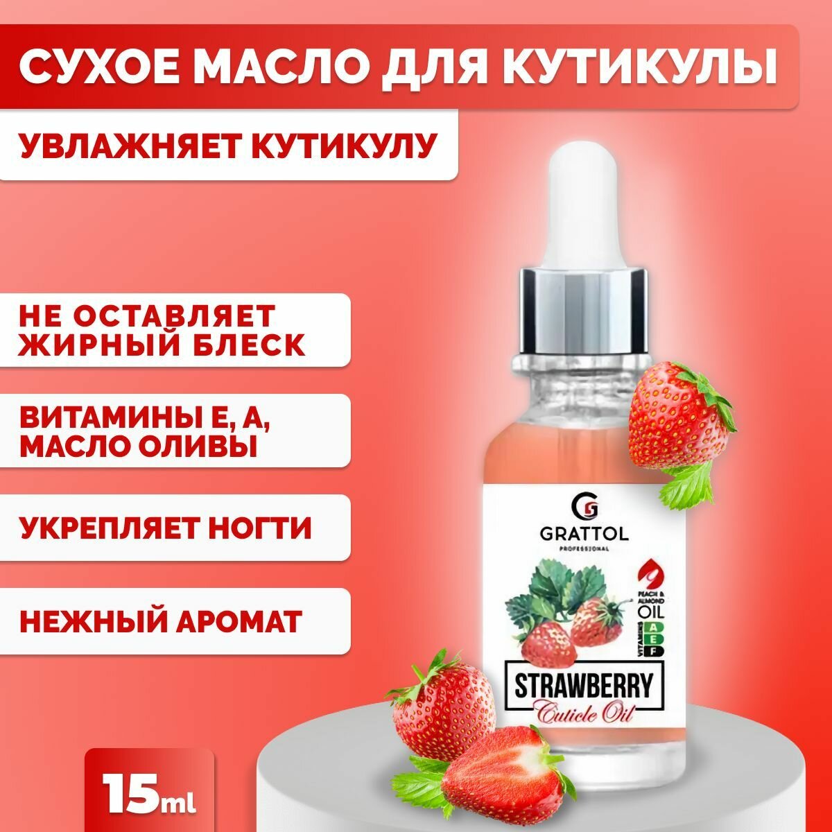 GRATTOL, Масло для кутикулы Клубника, 15 мл