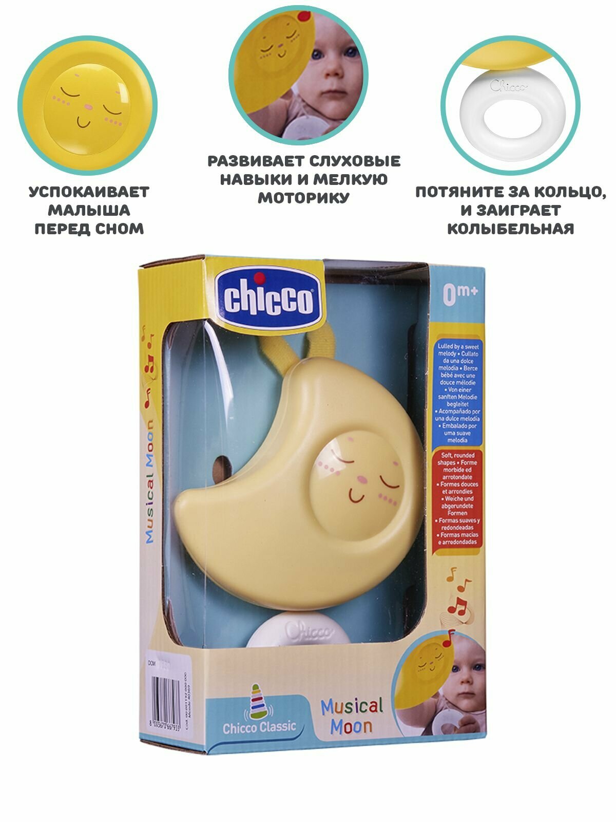Подвесная игрушка Chicco Луна, 0 мес+, желтый интересное: